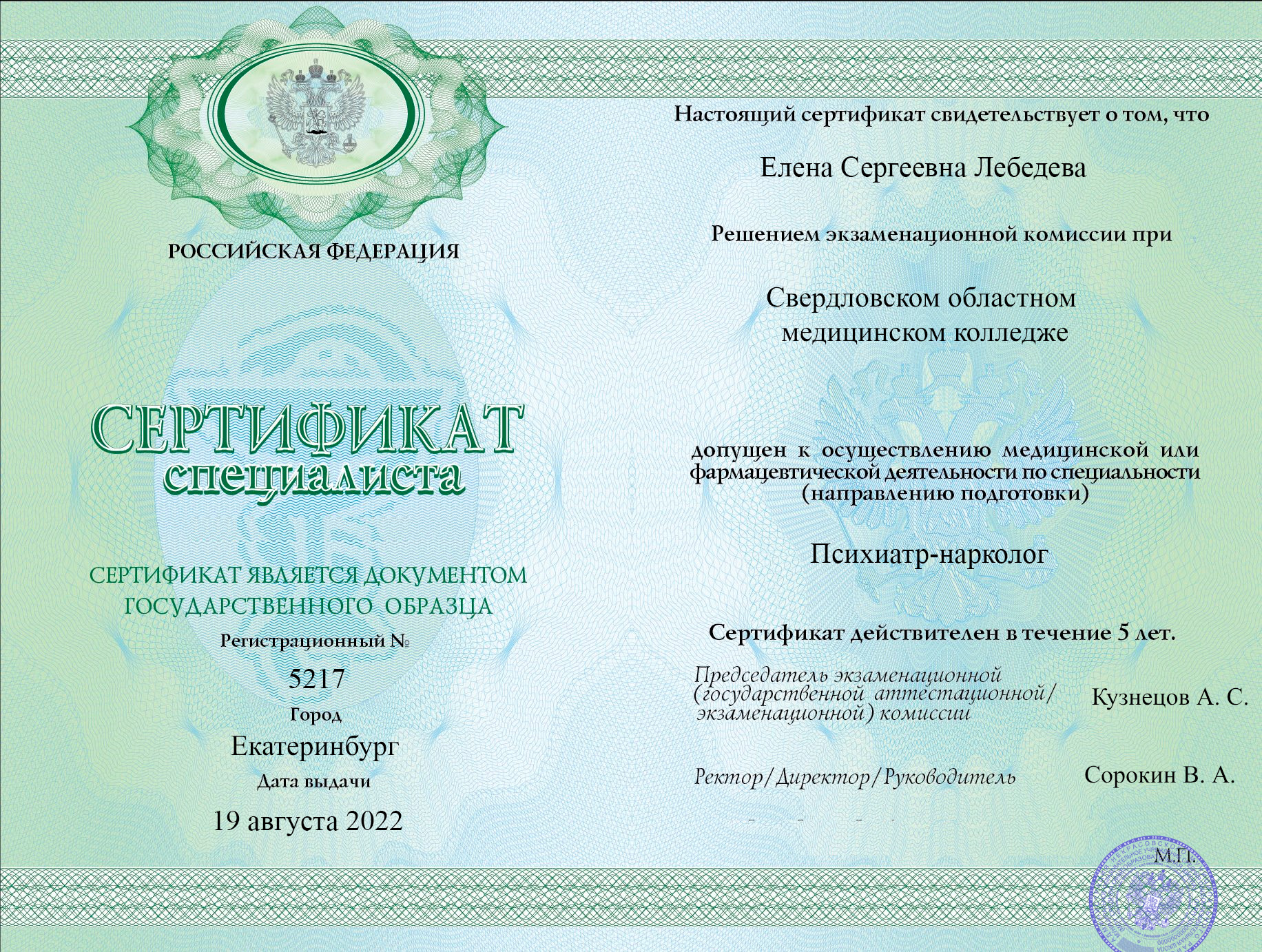 Елена Сергеевна Лебедева врач нарколог клиники доктора Стукаловой в Партизанске